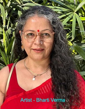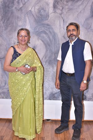 Visitors to the opening explored works that move between figuration and symbolic abstraction. Bharti Verma’s paintings reflect an inward gaze, where the human form becomes a site of memory, emotion, and introspection. In contrast, Ruchi Chadha’s lotus-inspired compositions evoke themes of renewal and quiet strength, using the flower as a metaphor for growth and emergence.